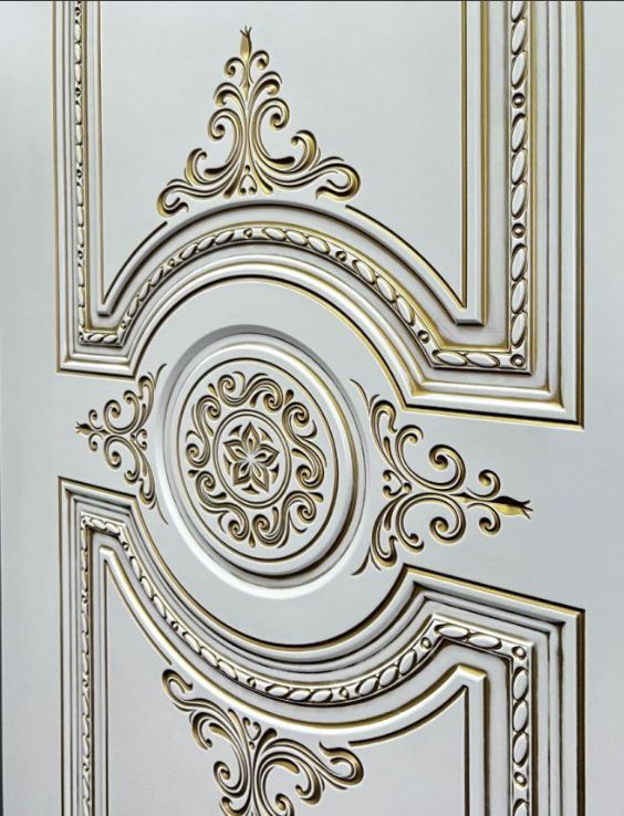 Дверь глухая Марокко В3 Эмаль белая, патина золото